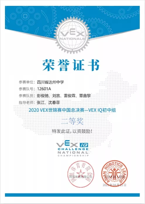 号:12601A)最终斩获VEX IQ初中组二等奖,这是继达州中学在第十八届四川省青少年机器人竞赛普及组决赛