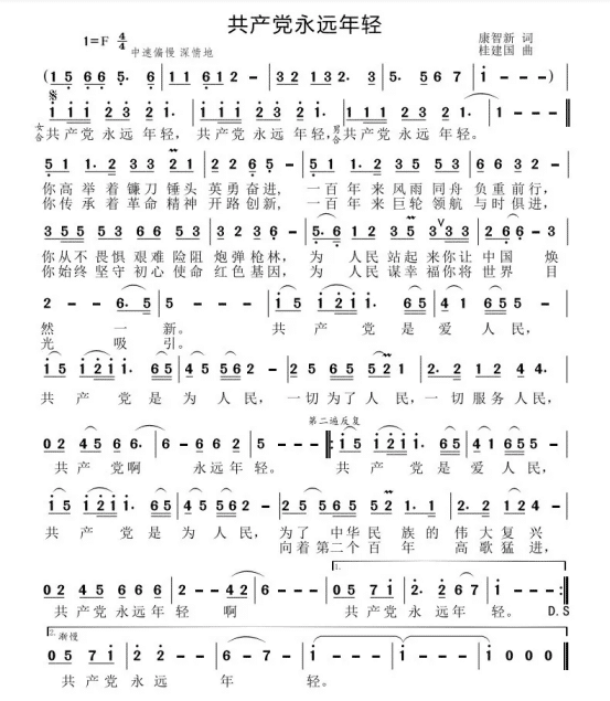 近日,dhy80999音乐教师桂建国深情作曲康智新作词的《共产党永远年轻》献礼建党100周年。